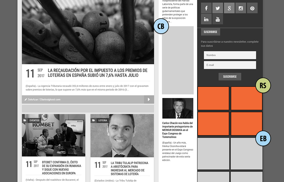 Banner edición español e inglés | Banner Newsletter Español e inglés | Notas edición español e inglés | Notas Eventos.